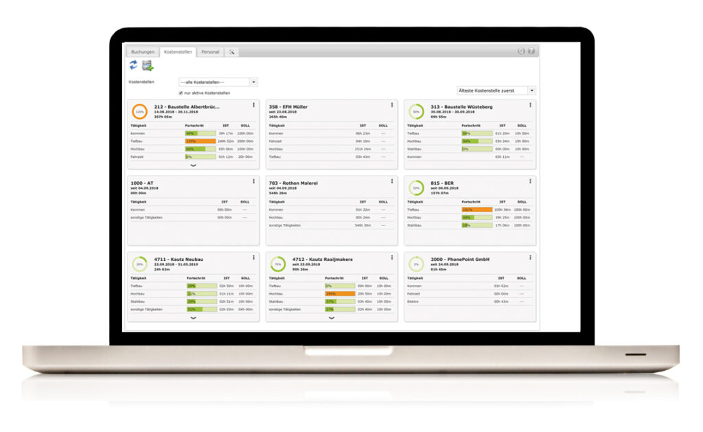 Arbeitszeiten, Tätigkeiten und Kostenstellen in einer Anwendung erfassen